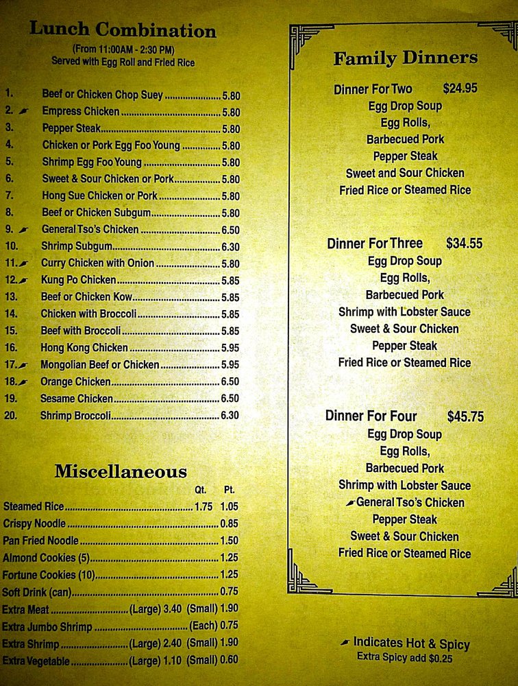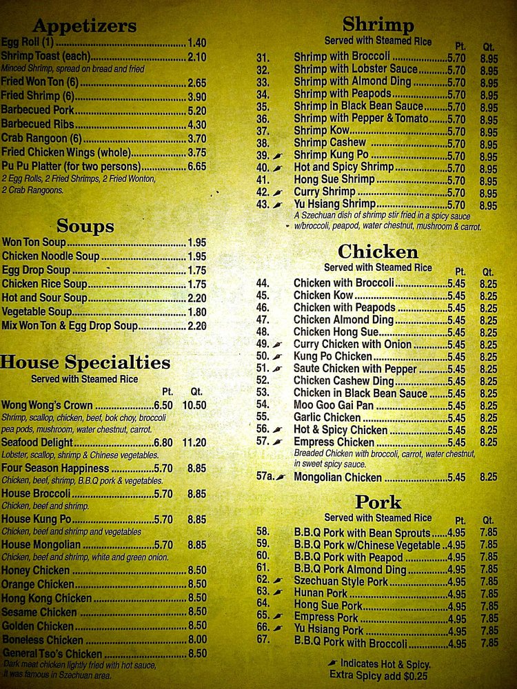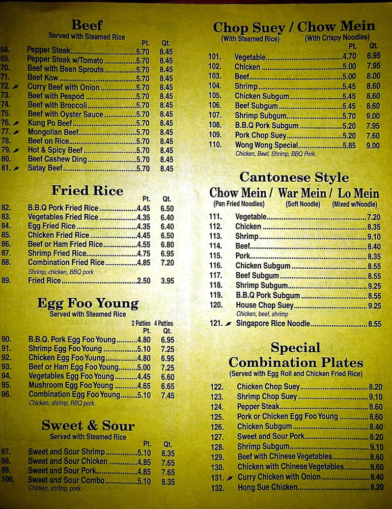 Wong Wong Chinese Restaurant Menu (Update 2025)